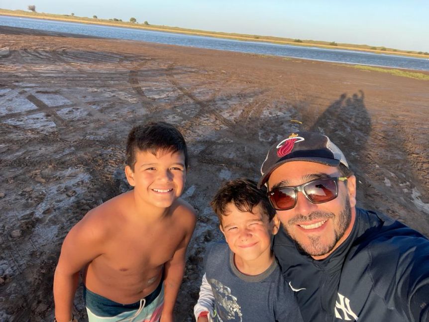 Sí, trato de llevarlos a los dos varones, porque Helena todavía es chiquita. Cada tanto me doy una escapada con amigos y algunos de sus hijos y vamos a Marisol, que es una localidad en la costa, en el partido de Dorrego, pasando Tres Arroyos. Vamos ahí porque son playas amplias, tranquilas, no hay señal de celular, no hay mucho más que la playa, la pesca y me gusta disfrutar con ellos.