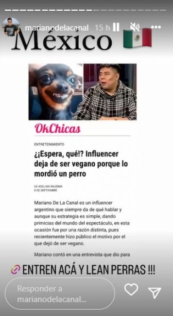 Días atrás, Mariano de la Canal contó una insólita anécdota sobre su breve paso por el veganismo que enloqueció a todos los usuarios de las redes sociales. El influencer, más conocido como "el fan de Wanda", reveló que dejó de militar por los animales luego de que lo mordiera un perro.