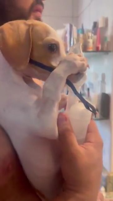 Este perrito sufre de una aflicción respiratoria, por lo que tiene que darse nebulizaciones diarias. Lejos de molestarse, incorporó la práctica a su rutina con rapidez y se volvió viral.