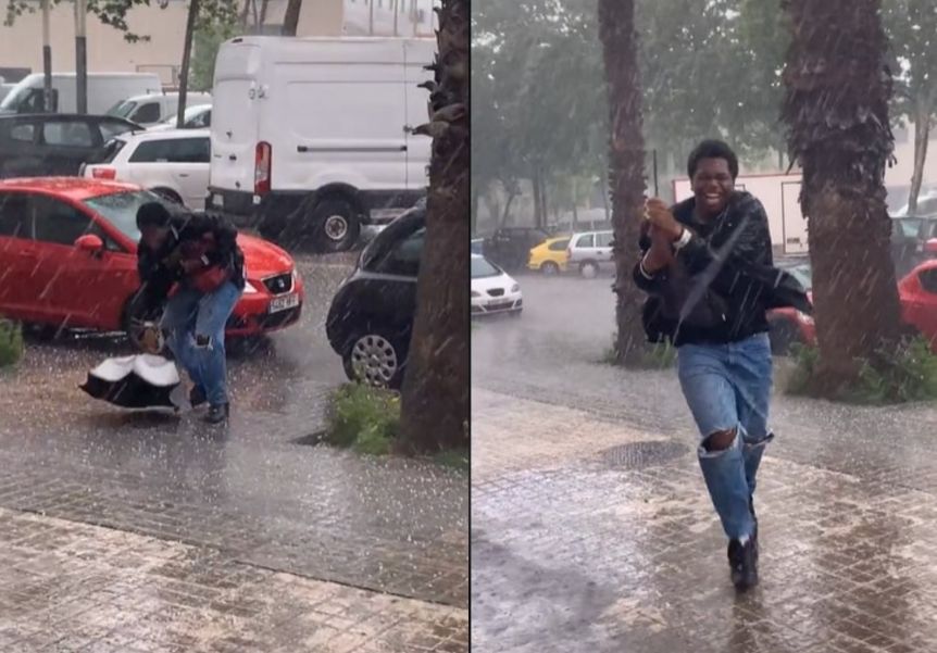 Intentó salvar su paraguas del fuerte temporal, no pudo y se volvió viral