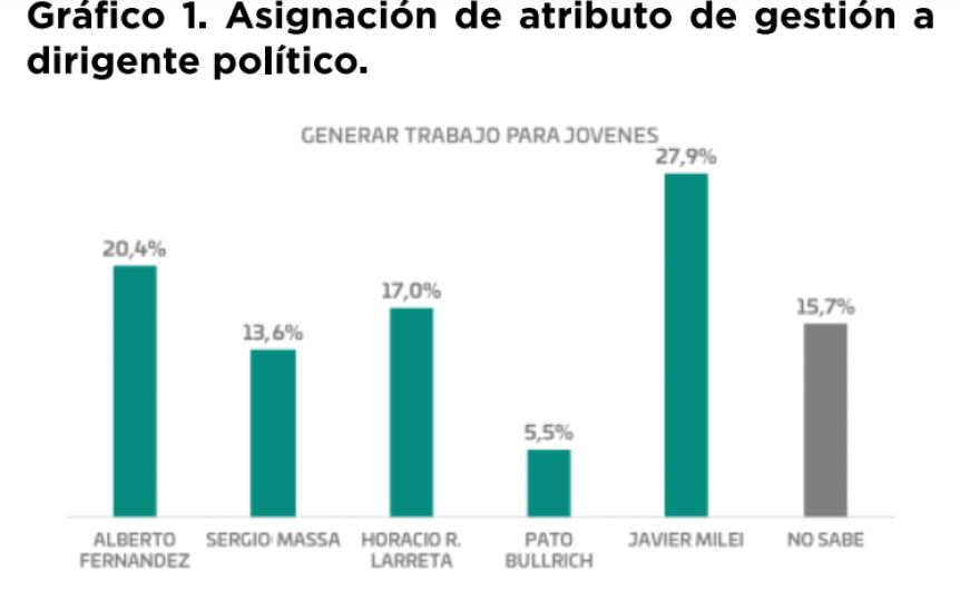 Asimismo, señalaron que ninguna figura política “tiene más de 35% de imagen positiva entre los jóvenes”, y evaluaron que “es un piso muy bajo, que muestra que la fragmentación y la polarización que afectan a la sociedad se ven agravadas cuando se trata del público joven. Las campañas electorales que subestimen este dato y no adecuen correctamente sus mensajes se van a chocar con una de las peores reacciones que se pueden obtener en comunicación: la indiferencia y la apatía”.