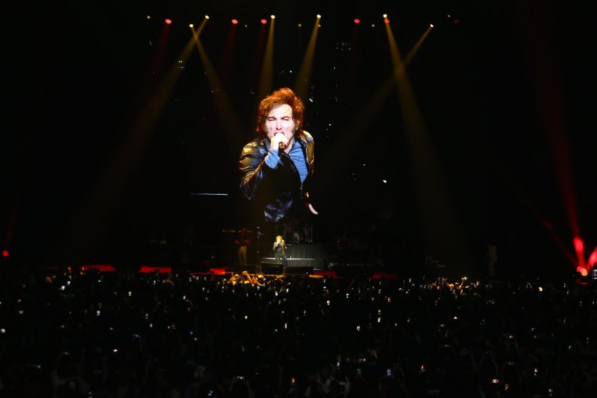 Frente a ese telón de fondo, el presidente Javier Milei protagonizó un acto de fuerte impronta visual y teatral en el Movistar Arena, donde combinó música rock, discursos incendiarios y una puesta escénica simbólica para recuperar la iniciativa política.