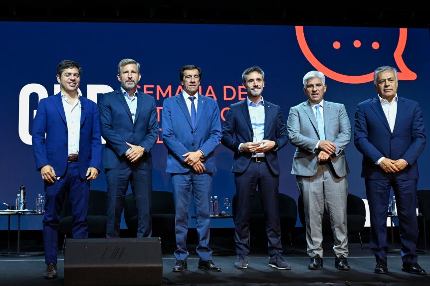 Luego de participar de los festejos por el aniversario de la ciudad de La Plata, el mandatario bonaerense compartió panel con los gobernadores Rogelio Frigerio (Entre Ríos), Carlos Sadir (Jujuy), Claudio Poggi (San Luís) y Alfredo Cornejo (Mendoza), todos alineados con posiciones más cercanas al gobierno de Javier Milei.