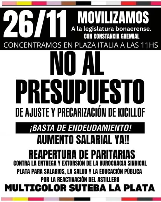 Desde otra vereda, docentes alineados con Suteba Multicolor, oposición interna a Baradel,  adelantaron que marcharán ese día para rechazar los proyectos de Axel Kicillof, exigiendo una recomposición salarial y la reapertura de paritarias.
