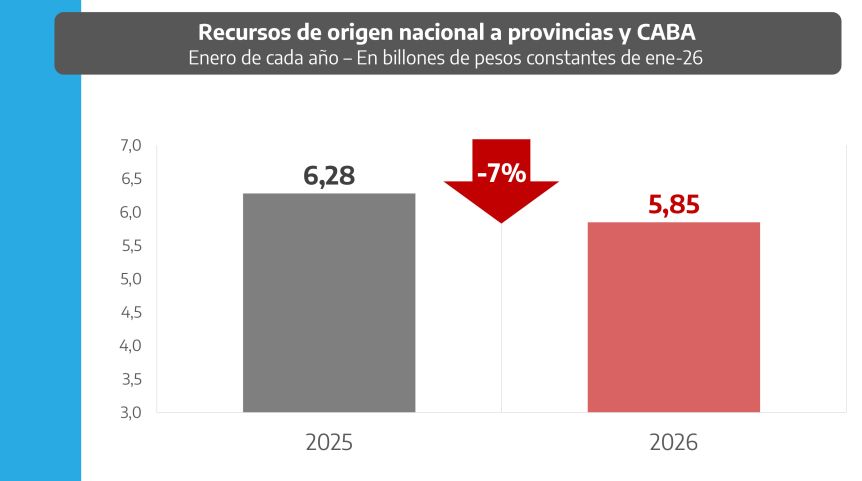 “En comparación con enero de 2025, los recursos de origen nacional a las provincias se recortaron más de $400.000 millones. Por su escala, la PBA es la más perjudicada, resignando más de $80.000 millones”, explicó López.