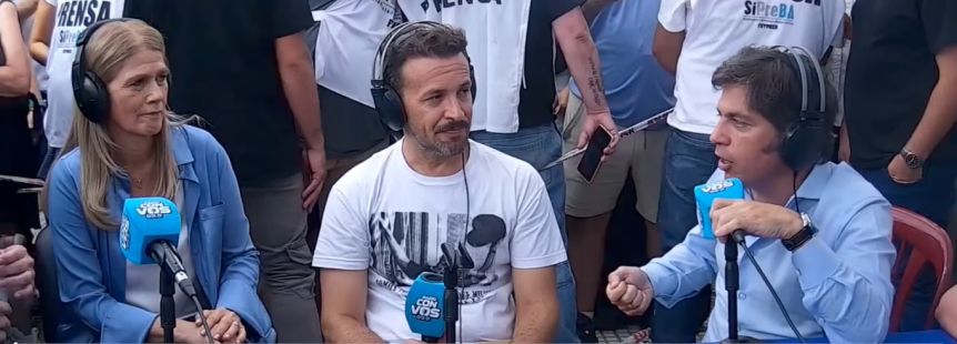 Acompañado por la vicegobernadora Verónica Magario, Kicillof brindó declaraciones a Radio con Vos y expresó: “Estamos en la casa de las madres rodeado de una multitud que está haciendo lo que tiene que hacer, que es manifestarse. Expresar que no alcanza con acuerdos entre un sector y otro, sino que el problema central es que están en juego los derechos básicos de los trabajadores. Esta es una ley que no va a crear trabajo, que no ayuda al que está informal o en peores condiciones”.