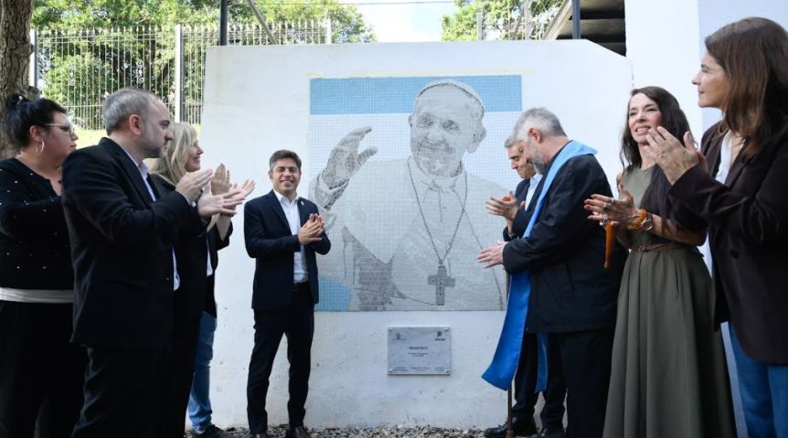 Uno que sí estuvo, y aprovechó para tirarle un palito a Milei, es el gobernador de la provincia de Buenos Aires, Axel Kicillof. El mandatario bonaerense estuvo en primera fila en la Basílica, pero antes participó junto al intendente local, Leonardo Boto, de un homenaje al fallecido Papa, en el que se descubrió un mural alusivo.