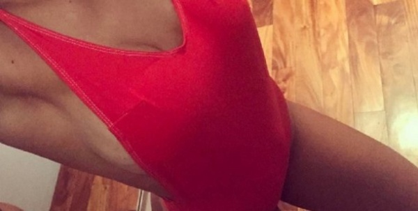 El traje de baño que luce es muy similar al que vestían las actrices de la serie Baywatch, y junto a una selfie, la famosa escribió: "Ella amaneció con calor y quería ser Pamela Anderson y no le avisaron que NO estás iguaaaal".