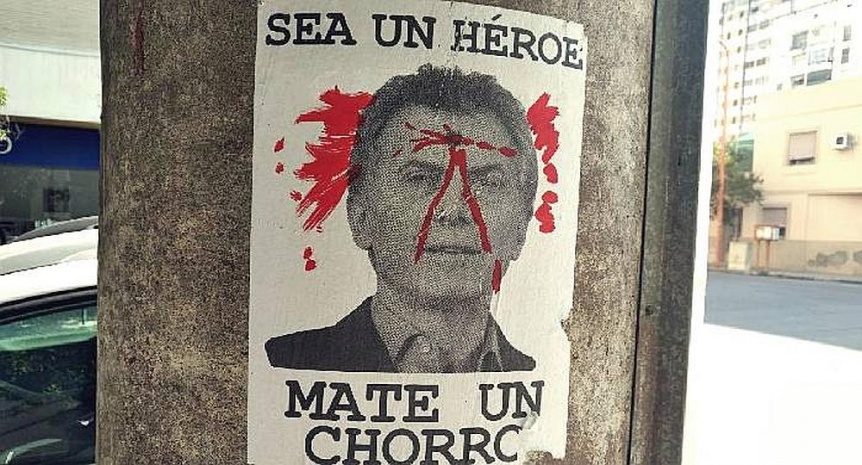 Los carteles, que aparecieron hace algunos días en la ciudad, muestran una foto del Presidente con un tiro en la frente y la leyenda "Sea un héroe-Mate un chorro".