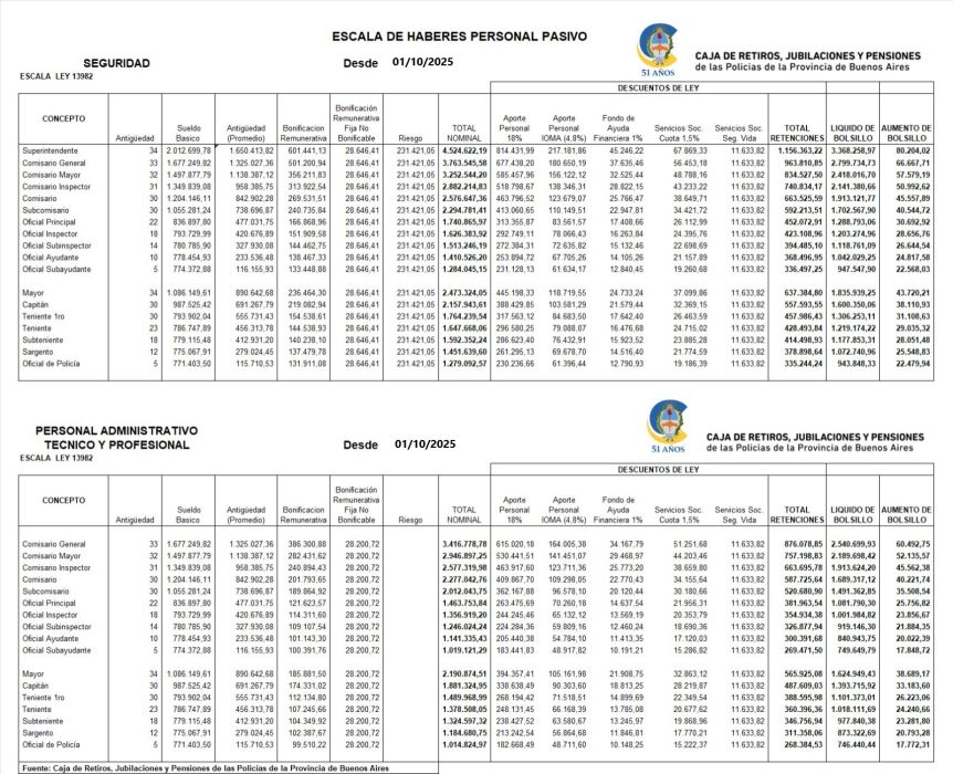 Más allá de la calma que ostentan desde la Provincia, los números alimentan el descontento. Según la escala salarial vigente, un oficial ingresante percibe entre $800.000 y $900.000 mensuales, mientras que un comisario ronda los $2 millones tras jornadas de 12 a 14 horas. Desde SIPOBA sostienen que el salario inicial debería ubicarse en torno a $1.650.000 para superar con margen la línea de pobreza y evitar que los efectivos deban recurrir a horas adicionales o trabajos informales para compensar ingresos.