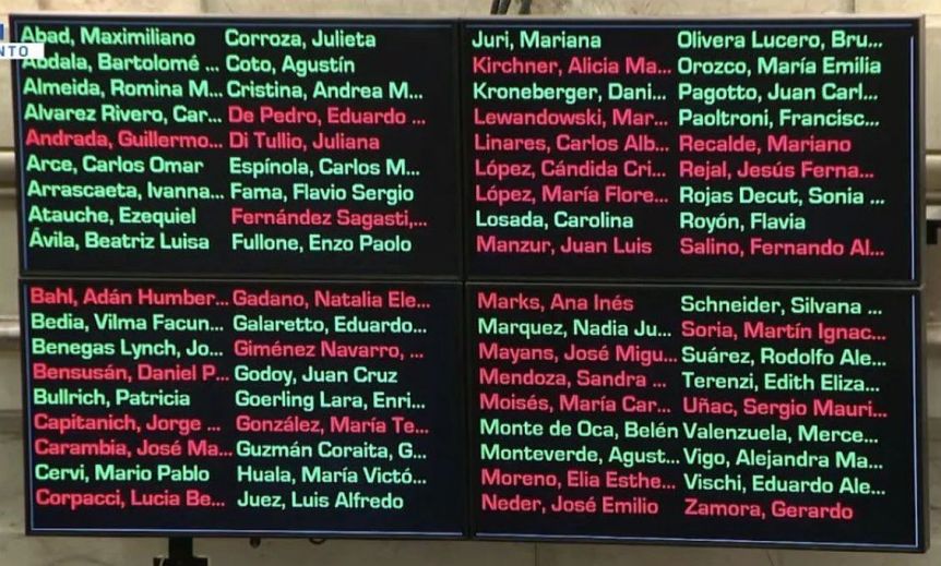 Finalmente, la Cámara alta le dio media sanción a la iniciativa del gobierno libertario, por 40 votos afirmativos contra 30 votos negativos. La votación tuvo lugar a la 1.20, al cabo de unas 15 horas de debate. Luego se procedió a la votación de cada título en forma particular.